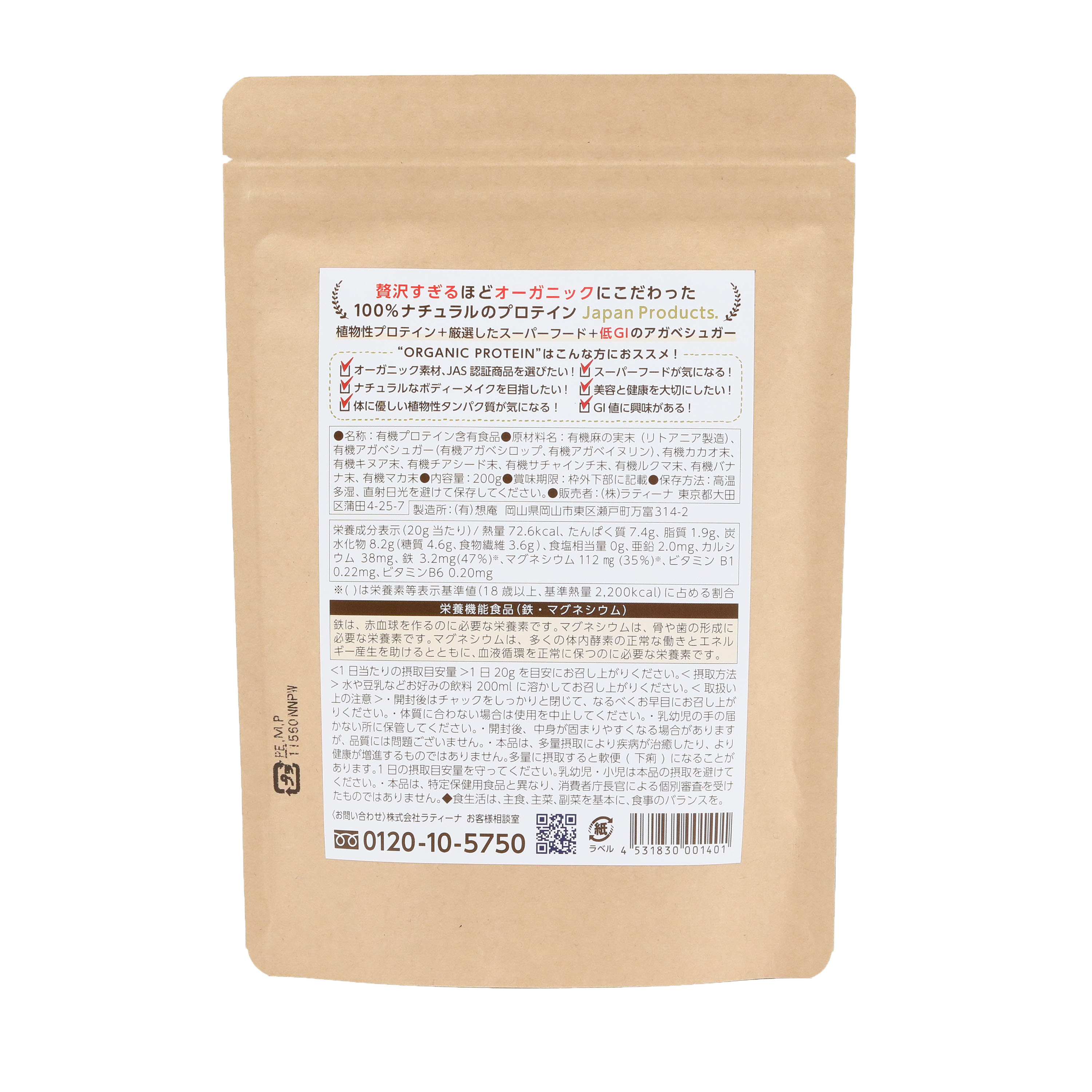 Latina Collectionの植物性オーガニックプロテイン(スーパーフードブレンド)。JAS認証など“素材の確かさ”にこだわり、毎日の栄養補給をサポートします。美容と健康を大切にしたい方、体にやさしいプロテインを探す方に。水や植物性ミルクに溶かして手軽に。